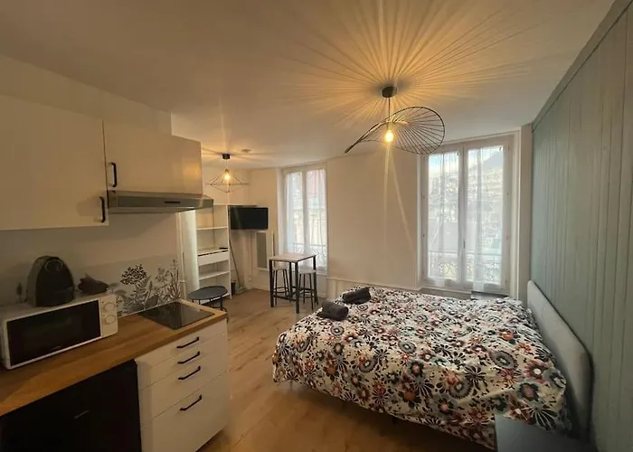 Az Appartement De Charme Dans Le Residence Historique Du Grand Hotel apartman kínál egy konyhát, valamint szobákat kávé/teafőzővel és síkképernyős műholdas TV-vel. Az apartman egy 25 perces sétára fekszik a Casino Poker Bowl és 15 perc autóútra van a Chateau Thomas II de Savoie területétől.